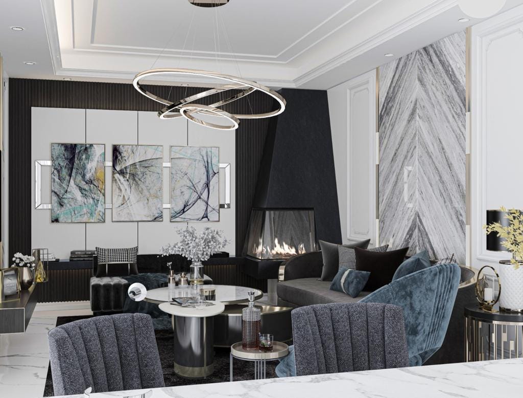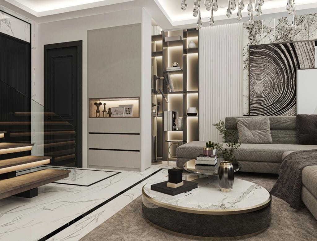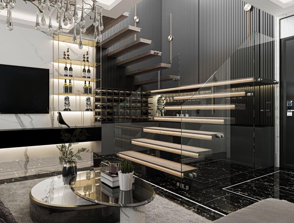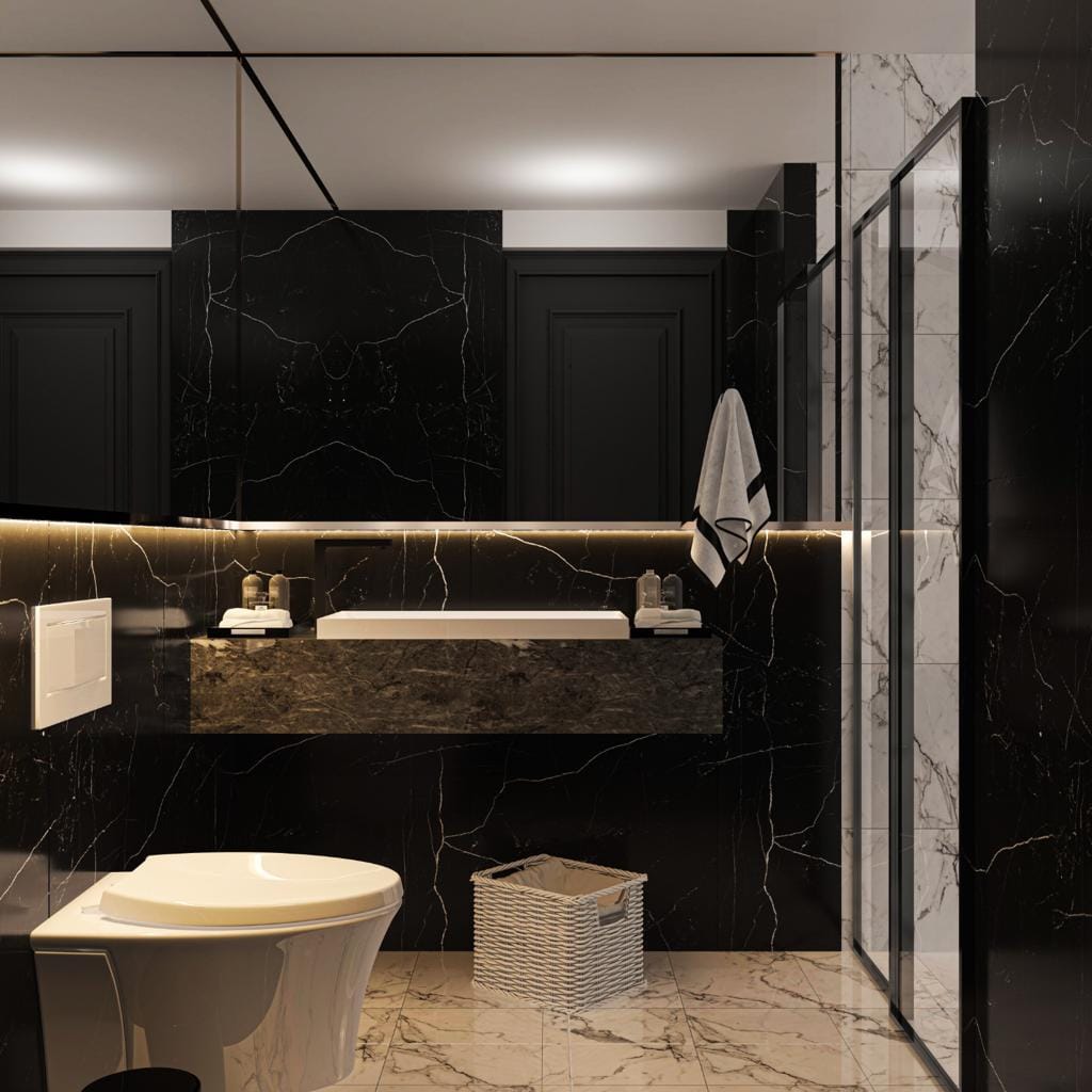 Modern ve Luxury tasarım fikrini benimsenen projemizde siyah, antrasit, beyaz ve gold detaylara yer verildi.