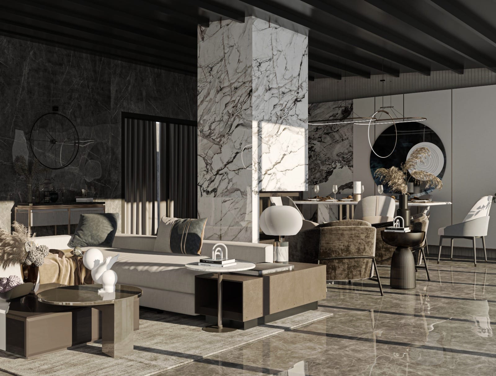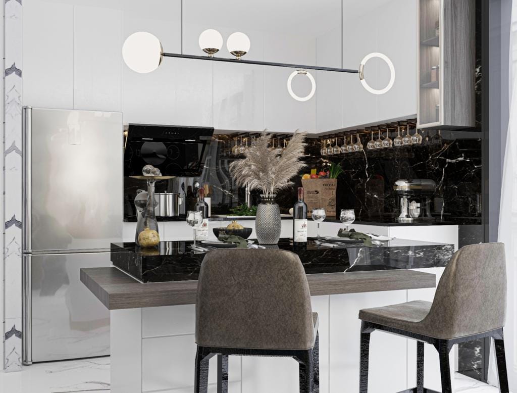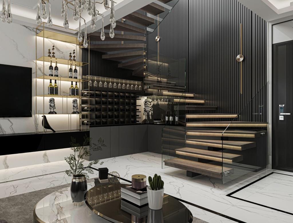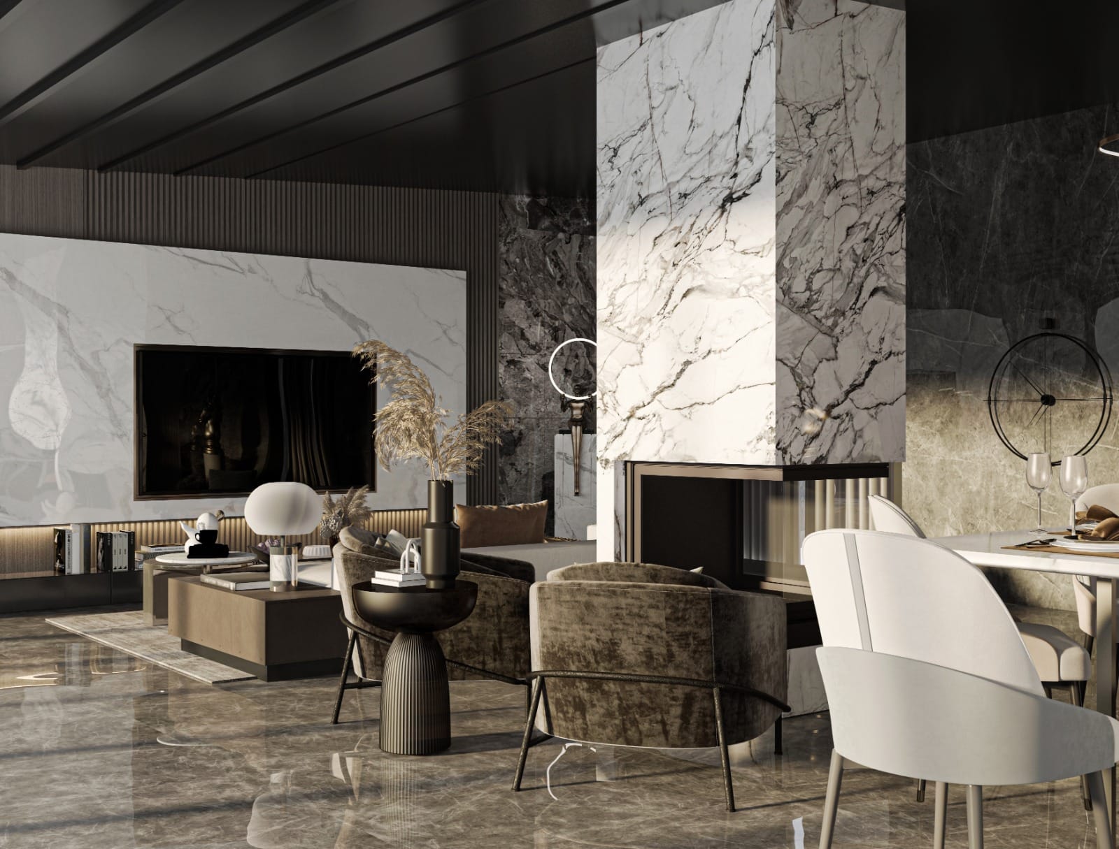Modern ve Luxury tasarım fikrini benimsenen projemizde siyah, antrasit, beyaz ve gold detaylara yer verildi.