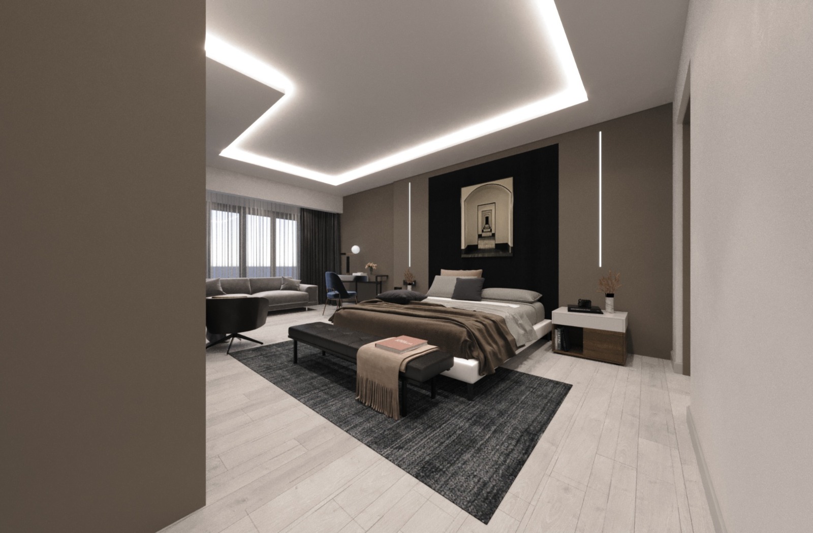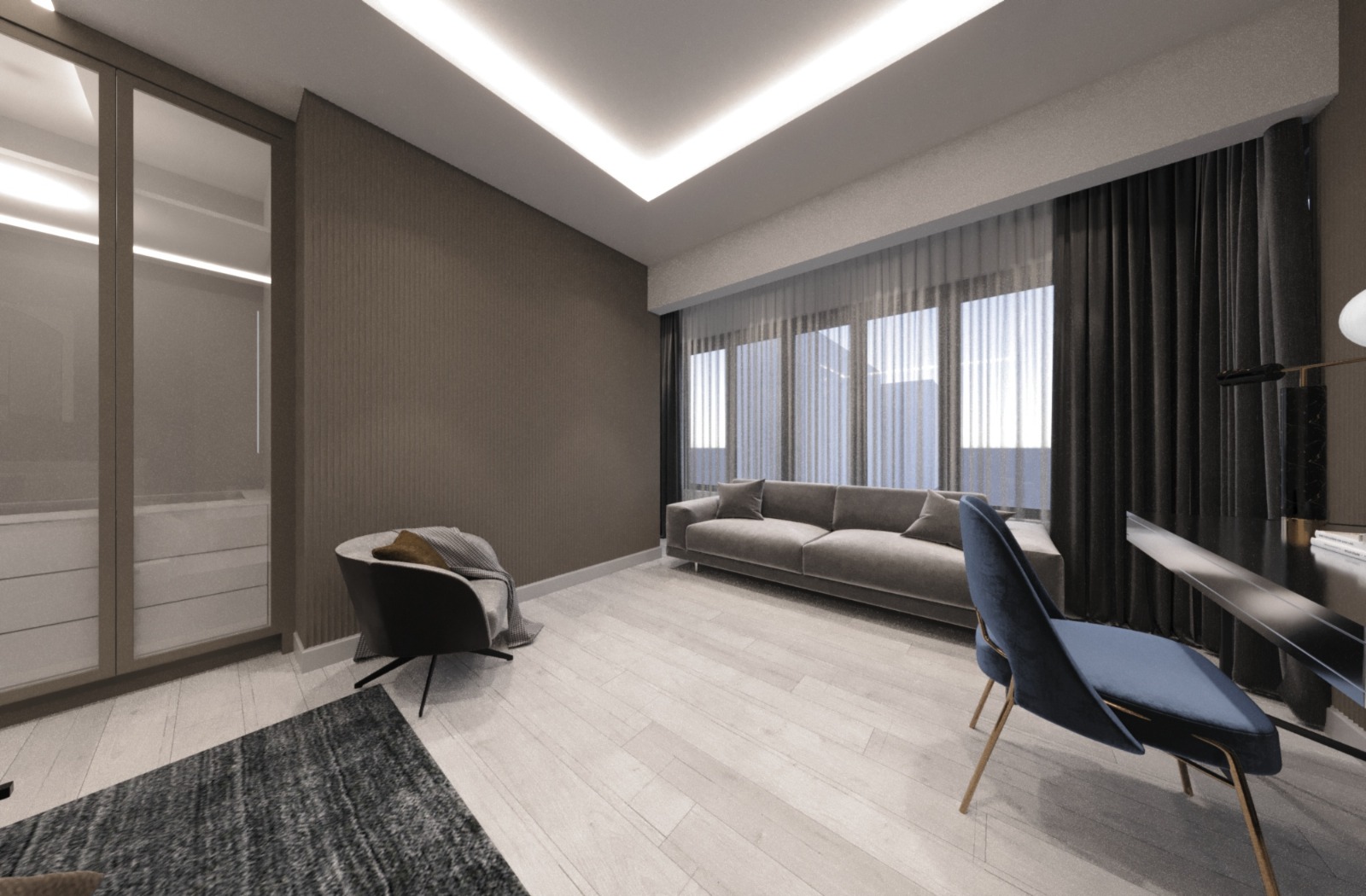 Modern ve minimal dokunuşlarla konforlu ve ferah iç mekanlar oluşturmak adına proejelendirilmiş, uygulanmış ve tamamlanmıştır.